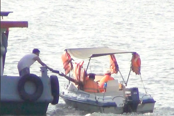 Canô CSGT đường thủy số hiệu CA 61-0022 liên tục kiểm tra phương tiện thủy thông qua việc nhận cuốn sổ và trả lại trong vòng vài giây.