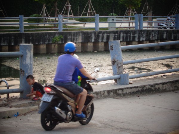 Trẻ em vô tư chơi đùa bên bờ kênh không rào chắn