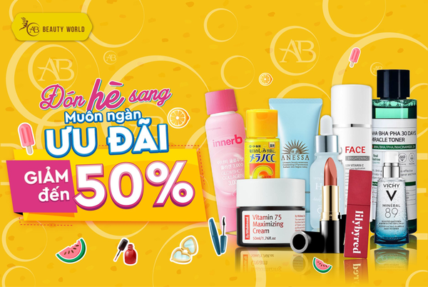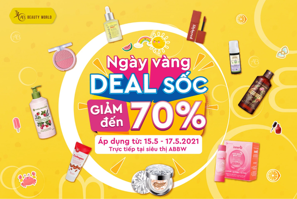 Từ ngày 15-5 đến ngày 17-5 chuỗi siêu thị mỹ phẩm AB Beauty World sôi động với chương trình GIẢM SÂU đến 70%, ngập tràn Deal hời không thể bỏ lỡ. Chỉ từ 5K bạn có thể mua ngay Mặt nạ, sữa rửa mặt, tinh chất dưỡng tóc,… Chỉ từ 42K tha hồ “rinh về” Kem che khuyết điểm, phấn má, phấn mắt, son dưỡng môi...