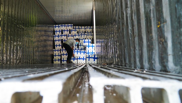 Hơn 1.000 thùng vải trong container được bán hết nhanh chóng. Ảnh: B.T